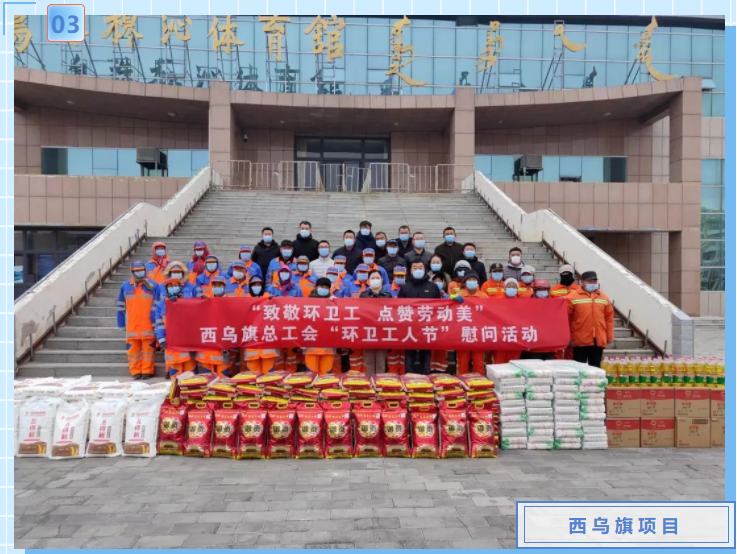 西烏旗政協副主席、總工(gōng)會主席薩仁圖雅現身(shēn)項目對全體(tǐ)員(yuán)工(gōng)進行慰問(wèn),向辛勤工(gōng)作(zuò)在一線的環衛工(gōng)人(rén)緻以節日(rì)的問(wèn)候和崇高的敬意,感謝他(tā)們爲環衛事(shì)業作(zuò)出的貢獻,希望廣大(dà)環衛工(gōng)人(rén)深入貫徹落實生(shēng)态文明思想,傳承弘揚“時傳祥精神”,并将中華全國(guó)總工(gōng)會和住建部發布的《緻全國(guó)環衛工(gōng)人(rén)的慰問(wèn)信》送達到環衛工(gōng)人(rén)手中,還(hái)爲他(tā)們分(fēn)别發放(fàng)慰問(wèn)品。