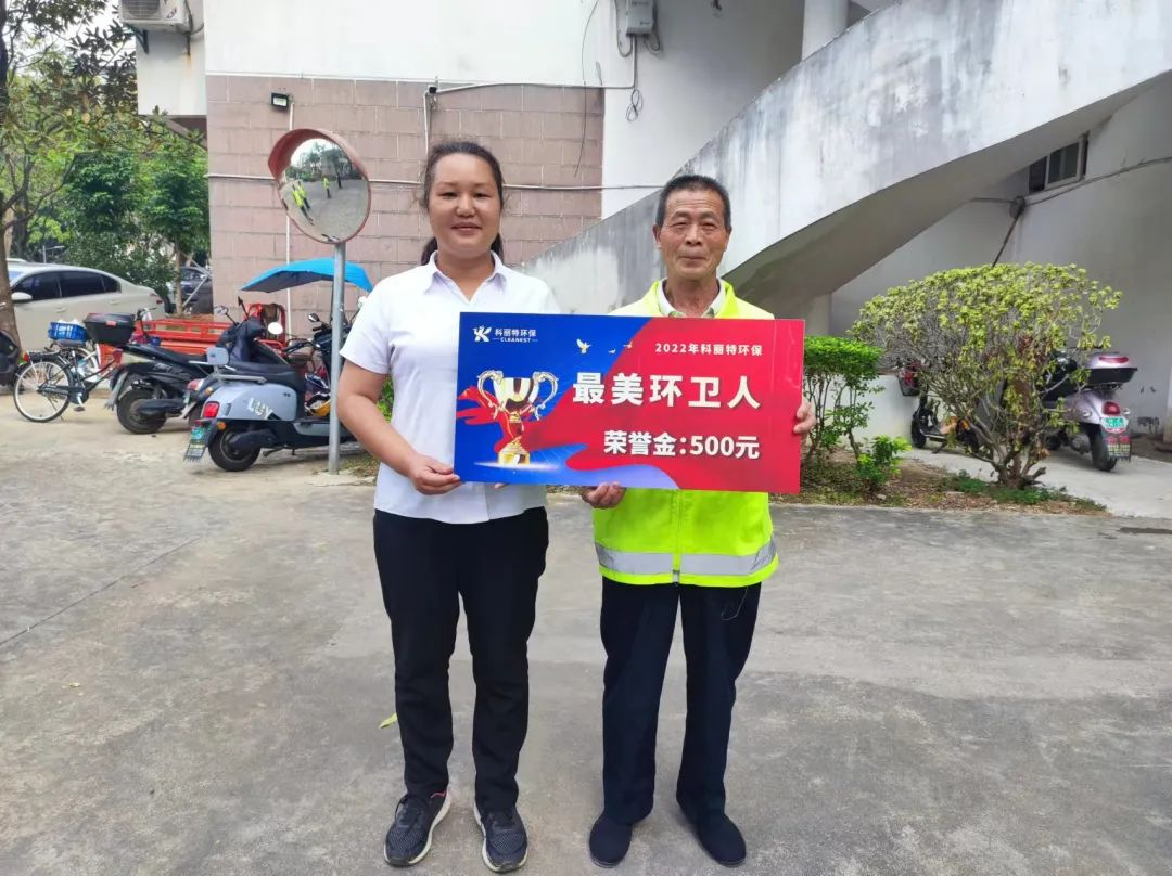 10月28日(rì)下午,廣西民(mín)族大(dà)學(思源湖校(xiào)區)項目開展環衛工(gōng)人(rén)節活動,校(xiào)方後勤管理(lǐ)處物業綜合辦鄭老師(shī)參與此次活動,并爲科(kē)麗特2022年(nián)優秀員(yuán)工(gōng)、班組頒獎。